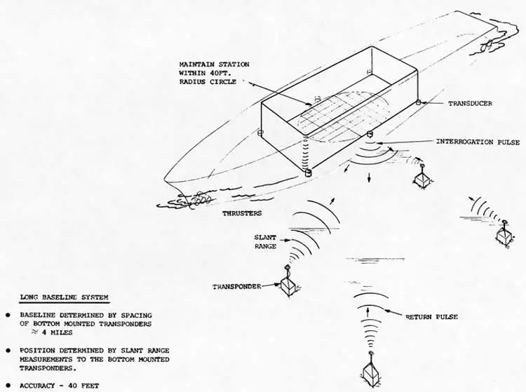 按照设计,HGE采用“长基线定位系统(Long Baseline System)”,正常工作需要四个定位应答机。每个应答机是一个1.2米见方的盒子,里面装满了DieHard公司的12V电池(DieHard是一个高档汽车动力电池品牌),四周以煤油做隔离,防止海水渗入。