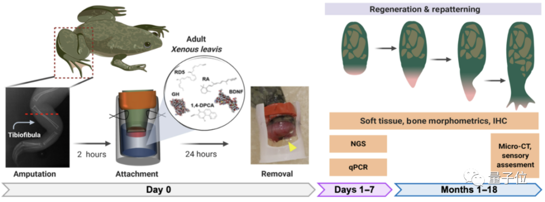 在这项实验中,研究人员首先在青蛙断肢处装上一个硅胶制的生物反应器。