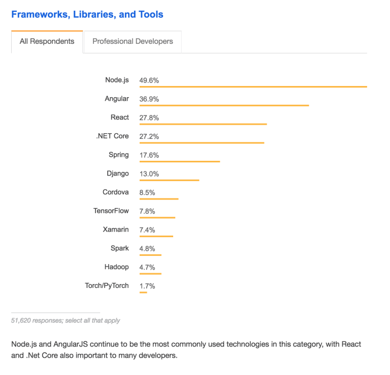 .NET Core 1.0自发布两年以来,得到了开发者群体相当高地认可。 下图来自Stack overflow survey 2018的统计: