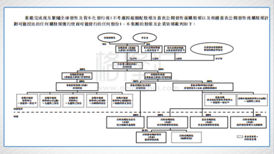 上市后,林医生及太太为公司的大股东,持股72.27%,林医生的父亲及管理团队持3.21%,新鸿基和盛智文先生持4.82%。