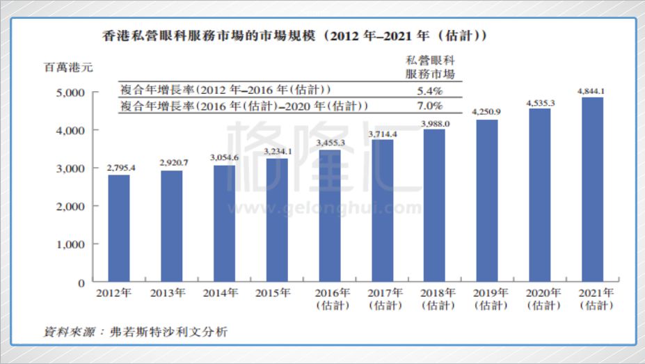 2014~2016年间,香港五大私营眼科服务提供商中,公司业务的收益增长率最高,复合年增长率29.6%。