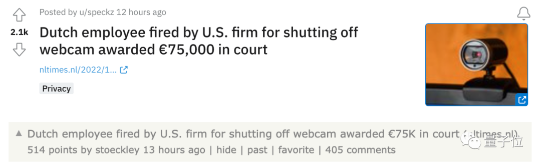 这名员工认为公司要求在家开启摄像头已经非常不合理,何况公司还侵犯了他的隐私,由此起诉这家公司。