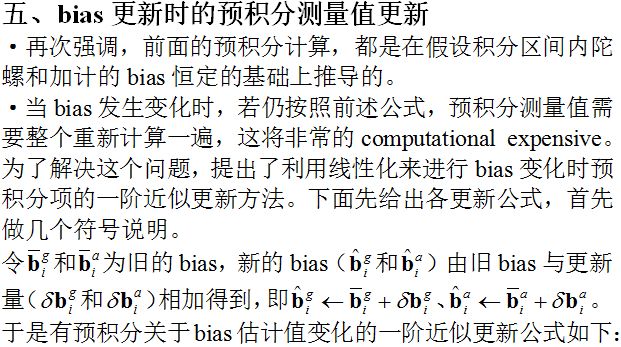 承接第二篇的内容,本篇将就bias估计值更新时预积分项的更新方式进行分析。另外对预积分的残差项及其Jacobian进行了介绍,详细的分析放在下一篇。