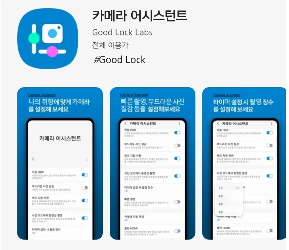 三星现发布了一款新的模块化 App“相机助手”,归属于三星 Good Lock 软件套件,可为“三星相机”带来多种新功能,适用于 One UI 5 系统的三星 Galaxy S22 系列机型。对于摄影领域的初学者,这款 App 可实现自动 HDR、柔化(去锐化,使照片模式下的边缘和纹理更加平滑),而且还会提供一个自动切换镜头的开关(避免调用数码裁切拍照),拍照模式下还可以随时拍摄视频,支持无延迟快门连拍,相机超时等。