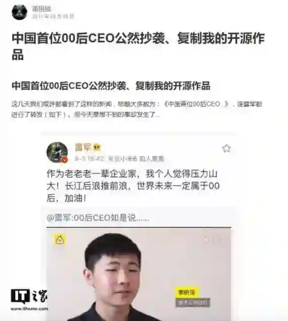 这几天我们或许都看到了这样的新闻,标题大多数为:《中国首位00后CEO...》,连雷军都进行了转发(如下)。但今天意想不到的事却发生了...