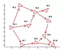 在这篇文章当中,我们提出,在不参考任何公共坐标系的情况下,通过一组机器人的相对位姿来评估其绝对位姿的方法。每个机器人都能够通过其邻近的机器人,来测量其相对与其他机器人的位置和朝向,但因为噪声的存在,这种测量方法并不是十分准确。这个方法的思路是,通过计算每个相关的机器人的位姿,来近似计算锚点的位置。具体步骤如下:首先计算每个机器人的相对方向,之后根据这些方向值,来更新其相对位置的测量值。如下图所示:10个机器人放在在一个平面环境中,并且处于未知的位置,每个机器人都可以测量其相对于其他机器人的位置和方向。