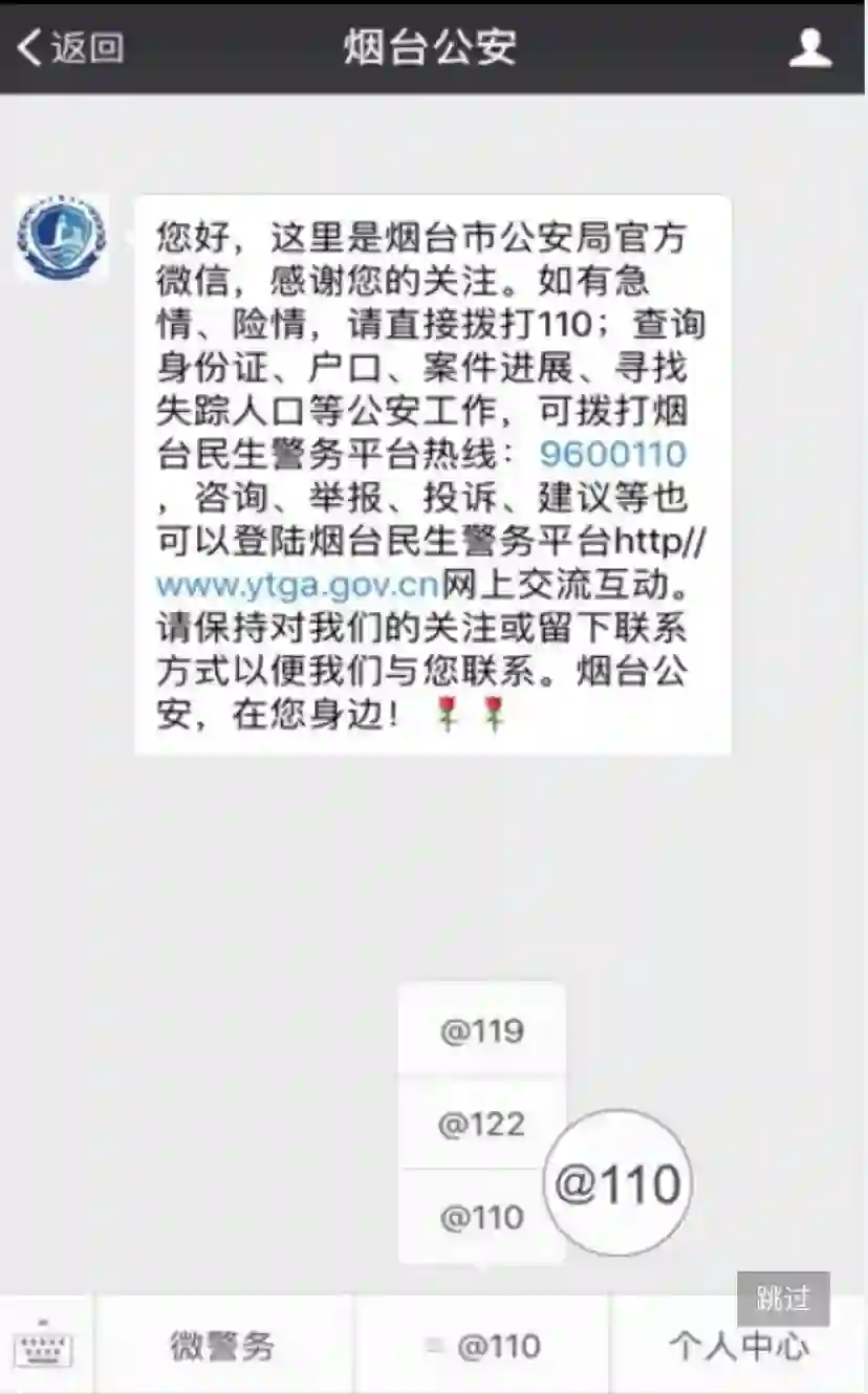 这是烟台公安联合腾讯共同推出的全国首例 “ @110 ” 直播互动性报警平台,一键点击@110,就能和警察蜀黍或者小姐姐视频通话,实时了解现场情况。