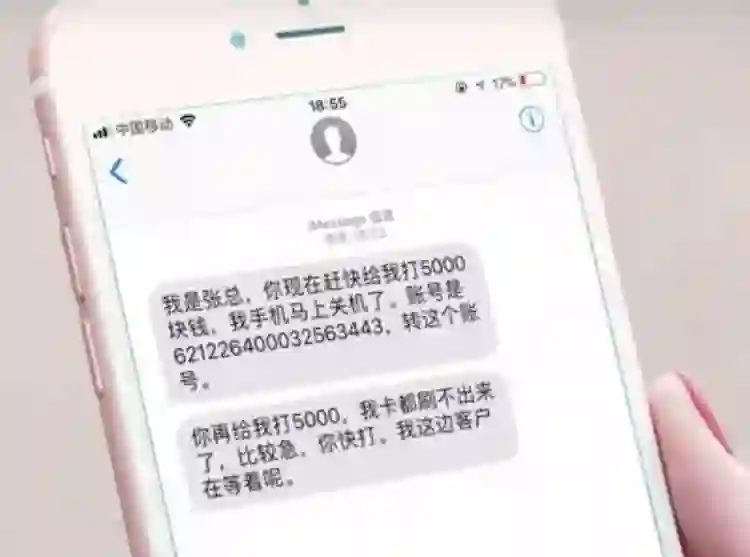 有一天,新员工梅小姐突然收到老板张总的短信,说需要紧急给一个客户支付定金,让她赶紧去银行转账给对方。