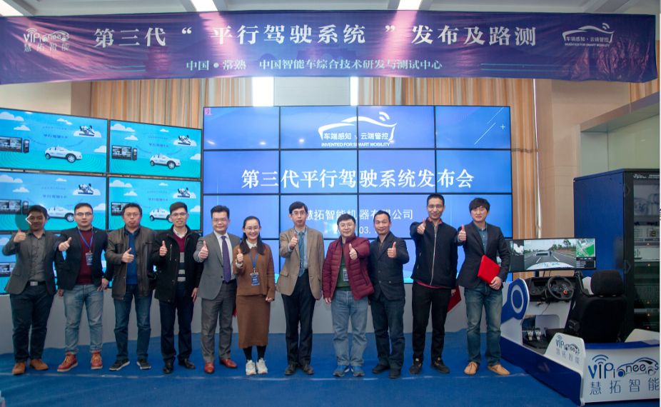 3月18日上午10时许,青岛慧拓智能机器有限公司(以下简称慧拓智能)“第三代平行驾驶系统”发布会在江苏常熟中国智能车综合技术研发与测试中心成功举办。会上同时展示了 “驾驶员”如何在平行驾驶管控中心利用驾驶模拟器远程管理并控制在真实道路上行使的多辆无人驾驶车。中国自动化学会副理事长、上海自动化学会理事长、兰州交通大学副校长李少远教授,中国智能车未来挑战赛副总裁判长、长安大学汽车学院院长余强教授,青岛智能产业技术研究院(下称青岛智能院)副院长、慧拓智能运营总监王晓博士,慧拓技术研究院执行院长陈龙博士以及慧拓智能主要团队负责人、合作伙伴、媒体代表等三十余人出席发布会,共同见证了“平行驾驶3.0”发布的重要时刻。