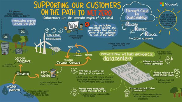 我们正与合作伙伴和客户携手,努力实现净零排放和碳负排放的目标。在此过程中,我们需要共享经验和进展,创造新的工具和解决方案来界定我们当前所处的位置,衡量我们的进展,并加以推广。如果您想进一步了解当前微软对数据中心的运营和承诺,您可以访问 microsoft.com/sustainability,或点击这里[13],线上参观我们的数据中心。