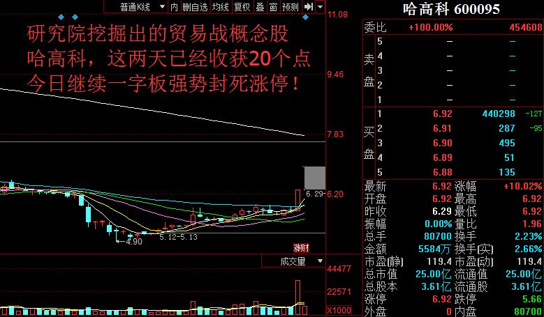 因此,我们研究院在上周挖掘到的哈高科这两天就已经收获了20个点!