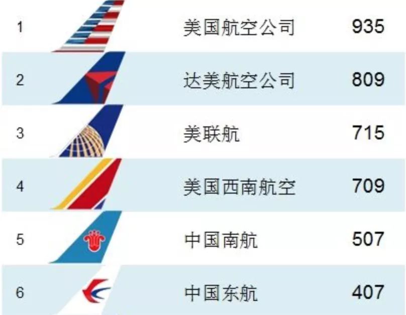 各大航空公司飞机数量排名