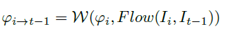 如示意图所示,分别将第t-1帧和第t-i帧(i=2,3,4,5,6)送到一个光流网络当中,提取5次光流特征。将所有这几帧图片如第t-1、t-2、...、t-6帧送到神经网络当中,分别提取提取深度特征