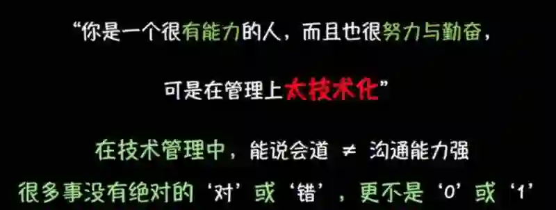 你是一个很有能力的人,而且也很努力,也很勤奋,可是在管理上太过于技术化。
