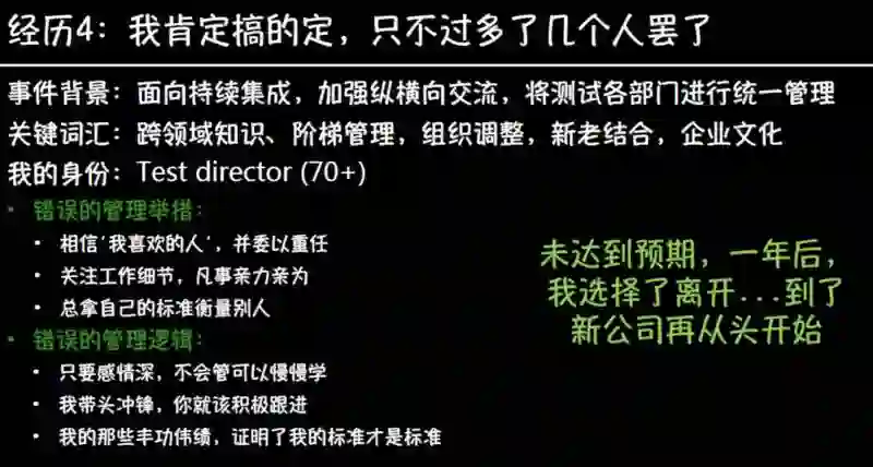 当时我真的不明白,我不明白为什么要做这样的决定。我把团队带好了就行,怎么用人有关系吗?什么叫管理?我把这帮人搞得服服帖帖不就行了吗?