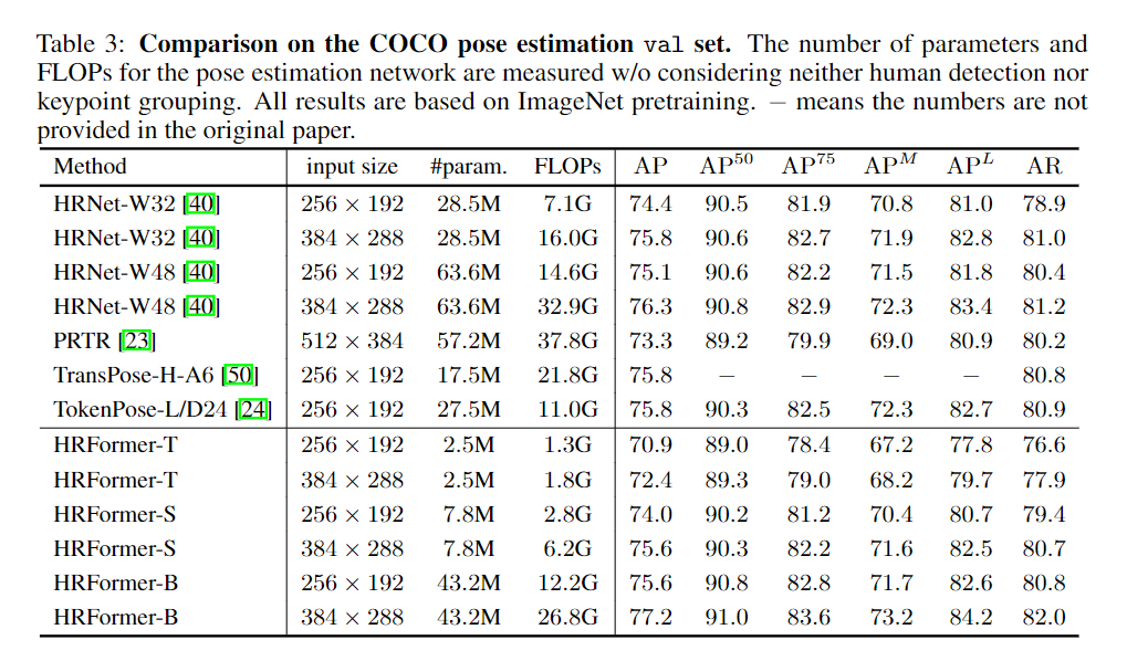 COCO姿态估计任务的每个HRFormer实验需要8×32g-v100gpu。