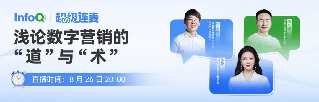 本期《超级连麦》,我们邀请到了微梦传媒 / 爱设计 CEO 赵充,和极客邦科技创始人兼 CEO 霍太稳(Kevin),InfoQ 极客传媒生态总监张昂,共话内容 SaaS 赛道的实践与认知。内容有删减,感兴趣的同学可进入“霍太稳视频号”观看直播回放。