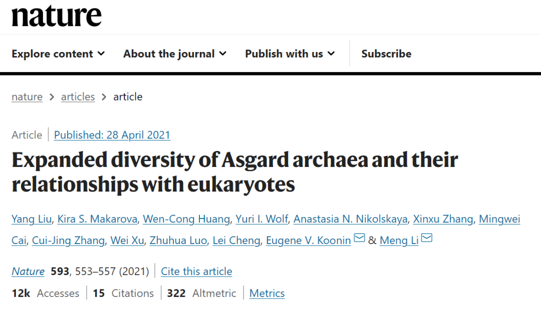 Expanded diversity of Asgard archaea and their relationships with eukaryote“阿斯加德古菌的多样性及其与真核生物的关系”