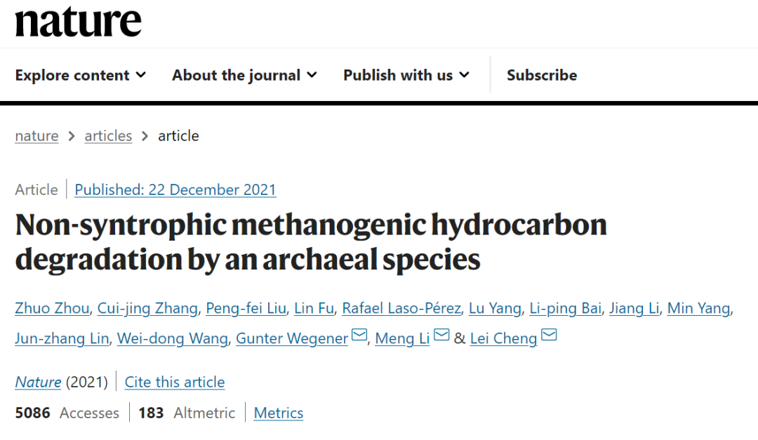 12月22日,Nature发表了来自深圳大学李猛教授团队的题为“Non-syntrophic methanogenic hydrocarbon degradation by an archaeal species” 的研究论文,首次证实了一种新型的产甲烷古菌,可直接“吃掉”石油产生甲烷,为后续开采奠定了科学基础。