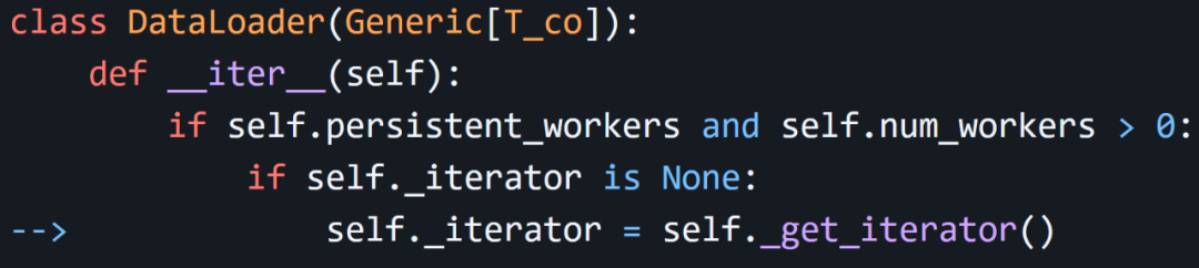 问题看起来确实来自在每个 epoch 中重新加载 DataLoader。查看 DataLoader 的源码,发现是这样的: