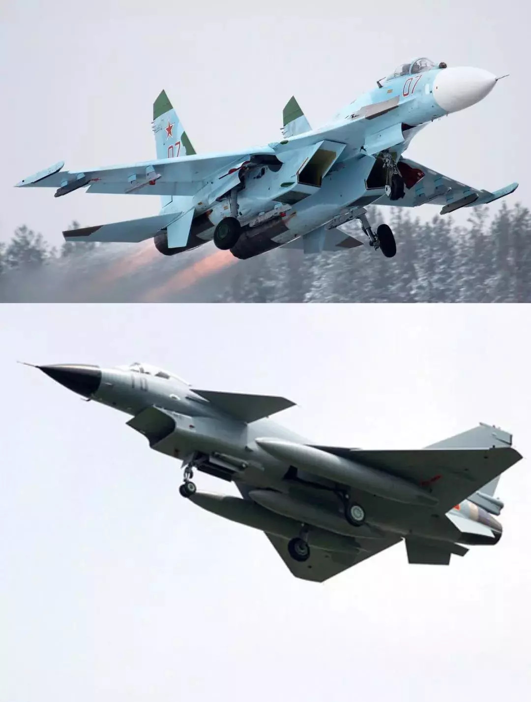 中国空军遵循一代引进一代研发的思路:上-90年代初引进俄制苏27 下-2004年服役的国产歼10