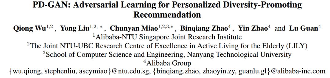 PD-GAN: Adversarial Learning for Personalized Diversity-Promoting Recommendation 本文提出了一种新的推荐模型-个性化多样性提升GAN(Personalized Diversity-promoting GAN,PD-GAN)。具体而言,对于每个用户,生成器通过从个性化的确定点过程(personalized Determinantal Point Process,DPP)核矩阵中进行序列抽样来推荐一组不同的相关项。该核矩阵由两个可学习的组件构成:多个项目的一般共现性和用户对项的个人偏好。为了学习第一部分,我们提出了一种新的使用训练对的成对学习范式,每个训练对由一组不同的项目和一组随机抽取的所有用户的观察数据组成。第二部分是通过针对判别器的对抗性训练来学习的,该判别器致力于从目标用户的观察数据中随机抽取推荐项目和ground truth之间的区别。实验结果表明,PD-GAN能更好地生成既多样又相关的推荐方案。 论文地址: https://www.ijcai.org/proceedings/2019/0537.pdf