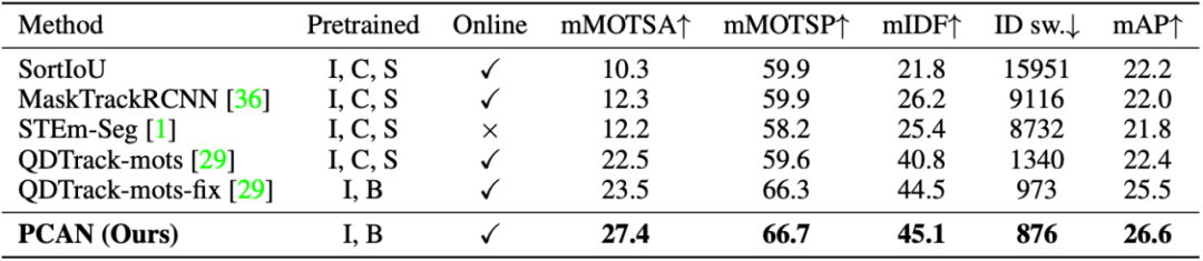 PCAN 作为一个 online method 在两个最大规模的 MOTS 数据集 BDD100K 和 Youtube-VIS 上都取得了领先性能。