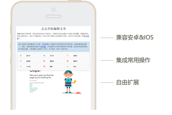 一款兼容ios 和android 的免费开源编辑器, 兼容绝大多数移动浏览器,但有些年代较久的安卓机器不兼容。