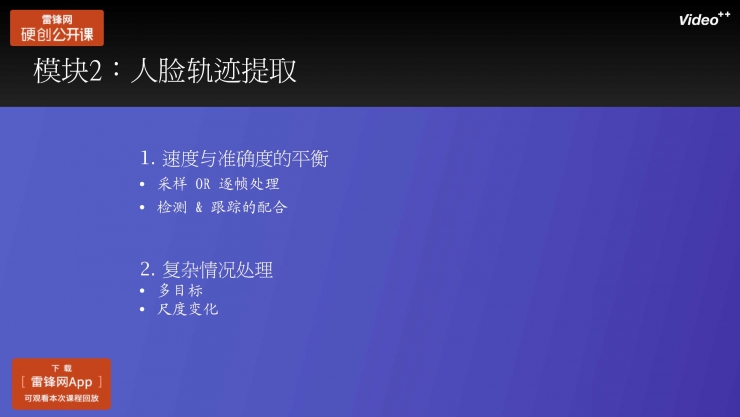 我们的设计思路是尽量获得更多的帧,来弥补单祯质量的不足。而在逐帧处理的策略下,我们采用的是跟踪模块,能够最大限度地利用时间信息来降低获取人脸位置的开销。因为跟踪比检测的计算量要小很多。