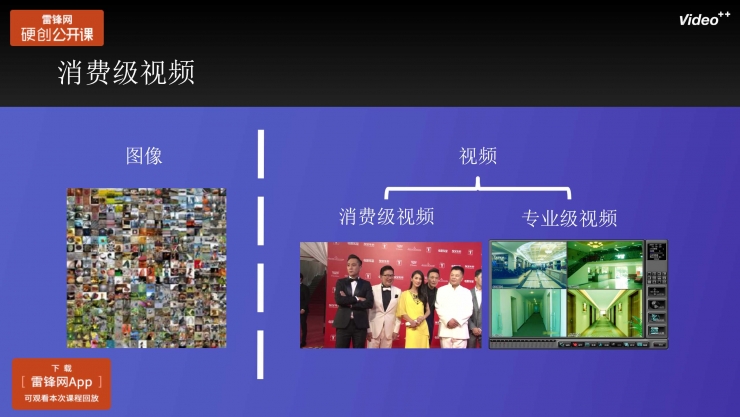 一般而言,视频一般分为两大类:消费级视频和工业级视频。工业级视频指的是利用固定设备在固定条件、固定场景下拍摄的视频。常见的有安防视频。很显然,消费级视频相对于前者而言更加复杂。下面就来看一下其相对于其他视频产品的不同。