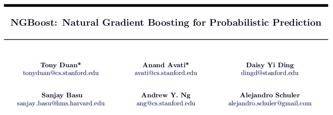 NGBoost 这种梯度提升方法使用了自然梯度(Natural Gradient),以解决现有梯度提升方法难以处理的通用概率预测中的技术难题。