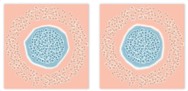 为了证明不同温度t1的影响,谷歌在合成数据集上训练一个双层神经网络的二元分类问题。蓝点和红点表示数据实际分属的类别,两个不同颜色的区域表示神经网络的训练结果,白色为决策边界。