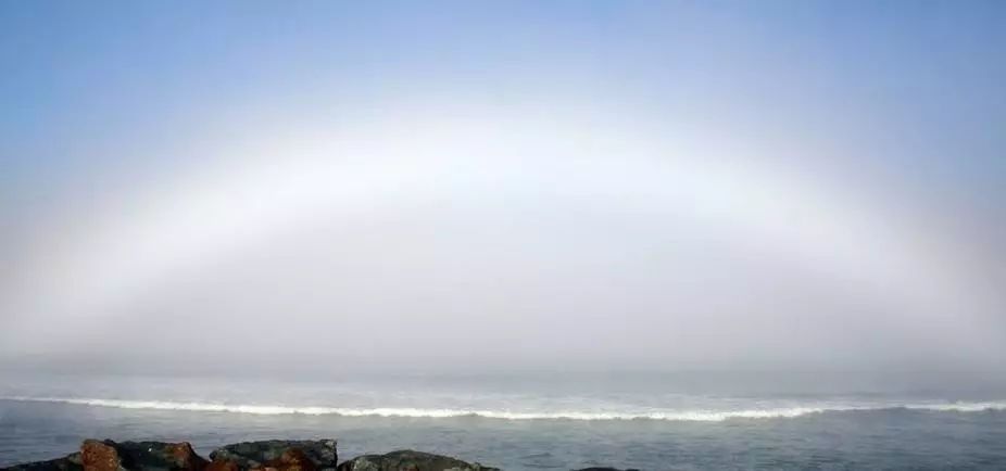 不同颜色的光折射率不同, 所以透过水滴才形成了七色彩虹,但非常偶然的机会,我们也能看到几乎纯白的彩虹。