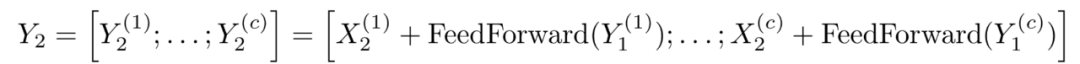 Y₁= X₁+Attention(X₂) Y₂= X₂+FeedForward(Y₁)