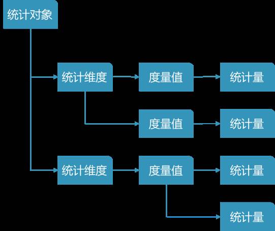 同一对象,可统计不同维度;同一维度,有不同的度量角度;同一度量角度,有不同的统计方式。如下图: