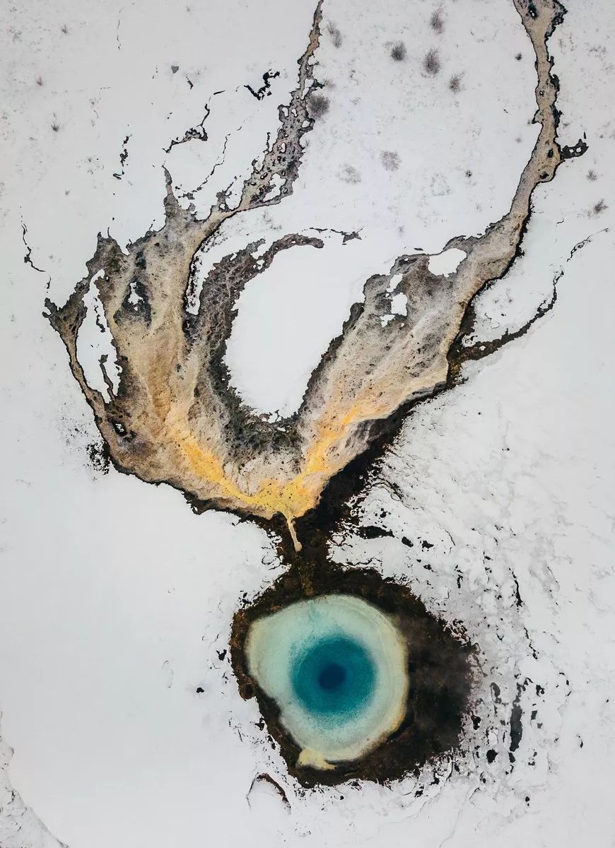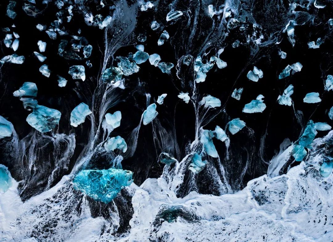 这张照片中,白色的水流和冰块很好的组合在了一起,画面中的线条和结构让观众目不暇接。通过无人机的空中视角,摄影师在这个热门的沙滩景点上,创作了一张很独特的照片。