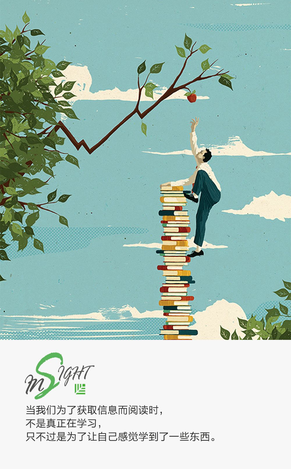 ▨ “最常见的阅读状态可能就像消费一样:我们阅读只是为了获取信息,尤其是在网上浏览一些信息时。这些信息不可能变成我们的知识,除非它们能被牢牢记住。”
