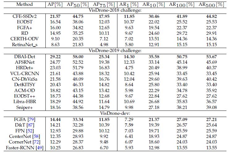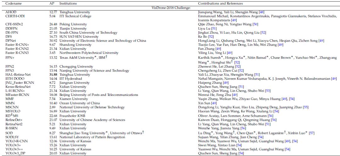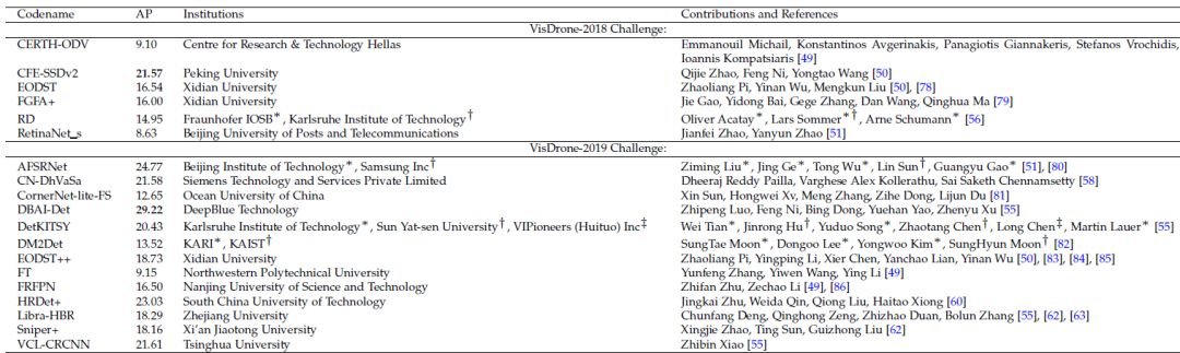 表2:参加2018年和2019年VisDrone-DET挑战赛的队伍,按字母顺序排列。