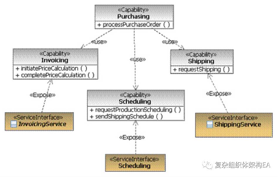 它有助于花些时间理解这些图表,因为我们将会看到与开发的 SoaML 方案相似的图表。