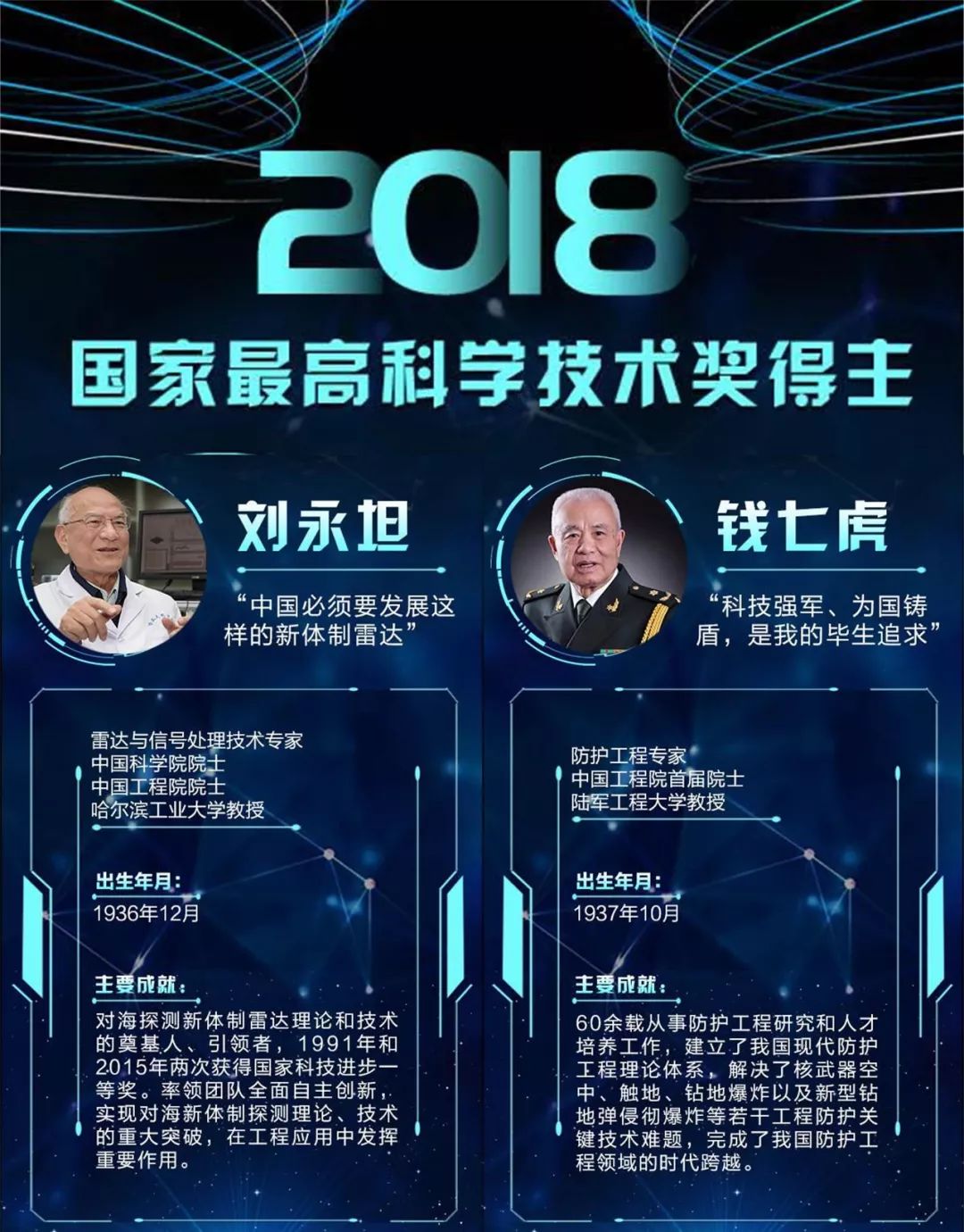 中共中央、国务院1月8日在人民大会堂举行2018年度国家科学技术奖励大会。哈尔滨工业大学刘永坦院士、中国人民解放军陆军工程大学钱七虎院士获2018年度国家最高科学技术奖。薛其坤院士团队完成的《量子反常霍尔效应的实验发现》摘取国家自然科学奖一等奖。5名外籍科学家获得中华人民共和国国际科技合作奖。
