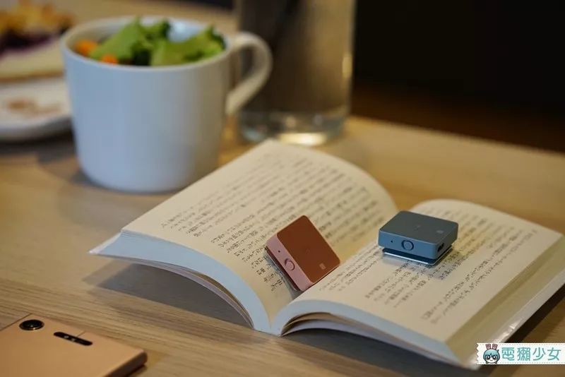 它背后有个小夹子能够夹在衣领或包包边缘,让你的耳机能够脱离手机,简单来理解就是“一组可通话的蓝牙耳机”,老实说蜜柑觉得有一团线缠在身上有点儿…不是那么理想,不过能够跟手机分开来其实也获得一定的自由度,算是相当微妙存在的设计产品,不亏是日本人的思考阿…微妙的实用度呢,但外型满分我超喜欢!粉蓝跟粉红的色系都很疗愈