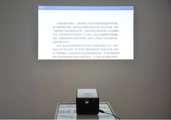 先说某米的某1S,当投影播放文档达到20分钟时,画面开始变模糊,但也还能看清楚,影响是有的,还不算大,我又重启调焦,再播放了15分钟左右,画面又变模糊。