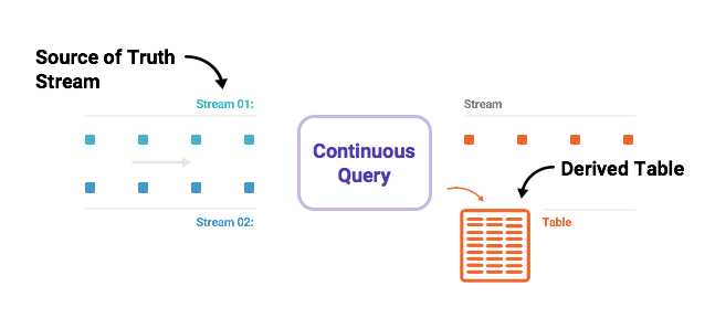 然后,您可以以这种流式表格方式运行即时查询(即将在KSQL中),以便以持续的方式获取日志中每个键的最新值。