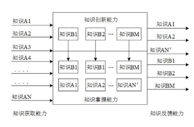 这个模型把任何一个智能体看做一个具有“知识的获取,掌握,创新和反馈”的系统,区别在于每个智能体在这四个领域里能力不同,从而导致智商评价的不同。如下图所示。
