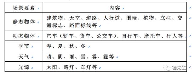 人工场景由许多要素构成,包括静态物体、动态物体、季节、天气、光源等。例如,人工室外场景的构成要素如表1所示。使用Agent表示场景要素,按照物理规律进行多Agent仿真。 使用Agent表示人工场景中的物体对象和环境因,每个Agent拥有自己的属性。将静态Agent添加到人工场景的相应位置,让动态Agent(行人、车辆等)在人工场景中运动起来。动态Agent具有运动行为模型,以实现路径规划、障碍物规避等功能。相关的Agent之间具有通信机制,例如当车辆在道路上行驶时,应自动获取其它Agent的实时信息,从而规划当前的局部路径和行为。可以利用赛博空间(Cyberspace)海量且丰富的静态和动态物体的三维模型。季节和天气直接影响人工场景的渲染效果,要求与物理世界的自然规律一致,例如春季植物开花、冬季地面有雪、晴天投射阴影、雾天物体模糊等。白天光源主要是太阳,夜间光源主要是路灯和车灯。从白天向夜间过渡时,会自动开启路灯和车灯;从夜间向白天过渡时,会自动关闭路灯和车灯。总之,要求人工场景的构成要素尽可能逼真并且多样化。