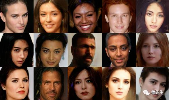 谷歌公司的Berthelot等[25]提出了BEGAN,即边界均衡GAN。这项工作针对GAN训练难、控制生成样本多样性难、平衡判别器和生成器收敛难等问题,提出了改善方法。它借鉴EBGAN (Energy-Based Generative Adversarial Networks)[26]和WGAN (Wasserstein GAN)[27]各自的优点,使用简单的模型结构,在标准的训练步骤下取得令人满意的效果。传统的GAN试图直接匹配数据分布,而BEGAN致力于匹配自编码器损失的分布。该方法为典型的GAN目标函数增加一个均衡项,平衡判别器和生成器。不仅如此,文献[25]还提出一个可以衡量收敛的超参数,实现了快速稳定的训练和很高的视觉质量。BEGAN 能够生成128×128的高质量人脸图像,包含多样化的姿态、表情、性别、肤色、光照射、胡须等特征,如图7所示。