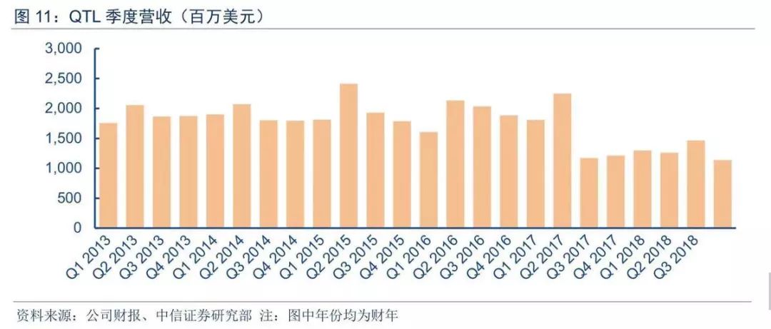 从图中可以看出,从苹果拒绝支付高通专利授权费开始(对应高通2017财年Q3),高通专利授权费经历了明显的滑坡。但直到此事之前,高通的诉讼并对苹果的业绩上造成明显影响,而高通的业绩却大受冲击。因此,高通势必会给苹果施加压力,若如高通所述,诉中临时禁令已通过,高通将获得一个有力的筹码。