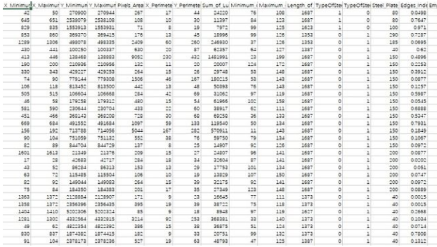 该数据集包含了7种带钢缺陷类型。这个数据集不是图像数据,而是带钢缺陷的28种特征数据,可用于机器学习项目。钢板故障的7种类型:装饰、Z_划痕、K_划痕、污渍、肮脏、颠簸、其他故障。