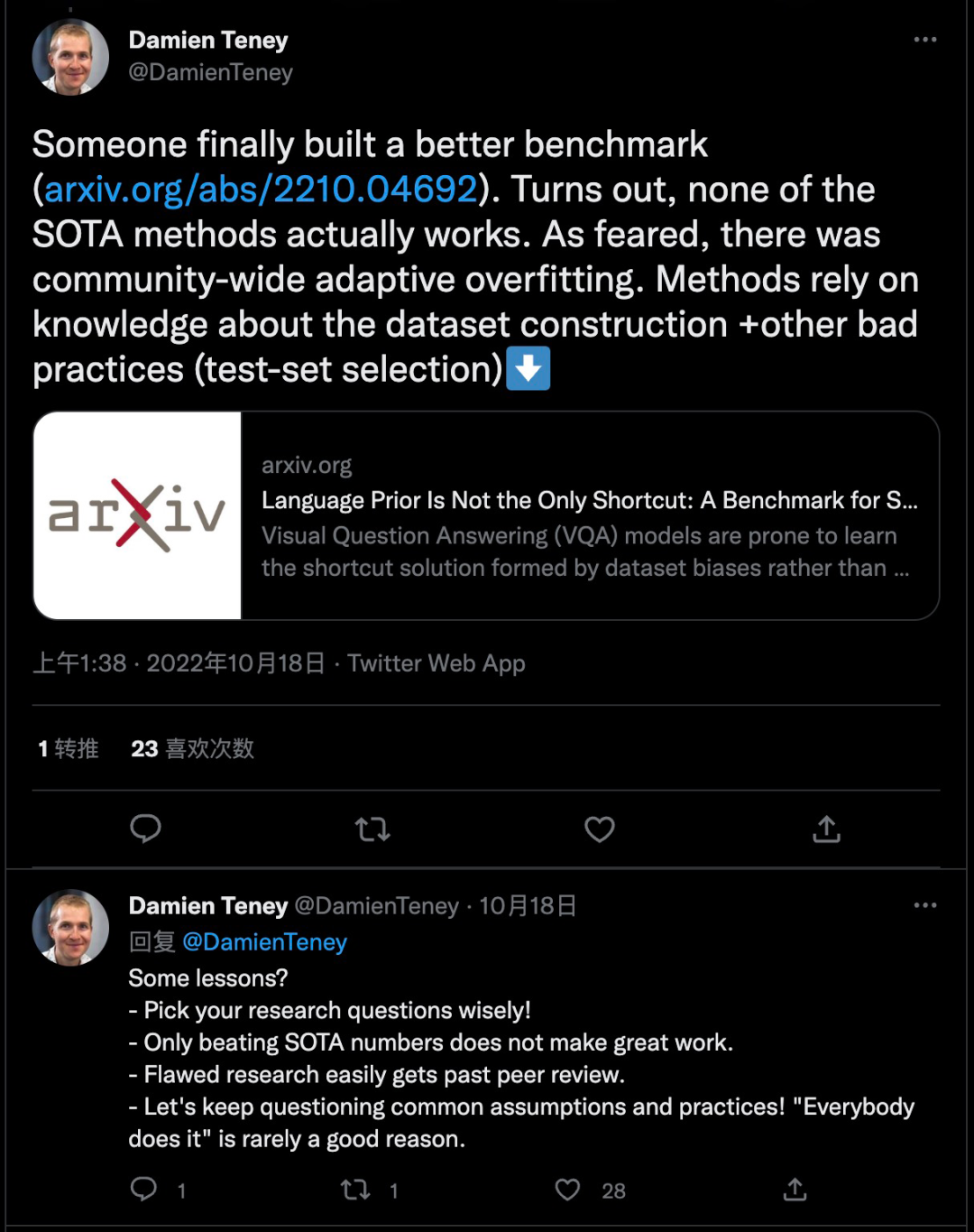 ▲ 图7 Damien Teney在Twitter上对我们工作的转发和讨论