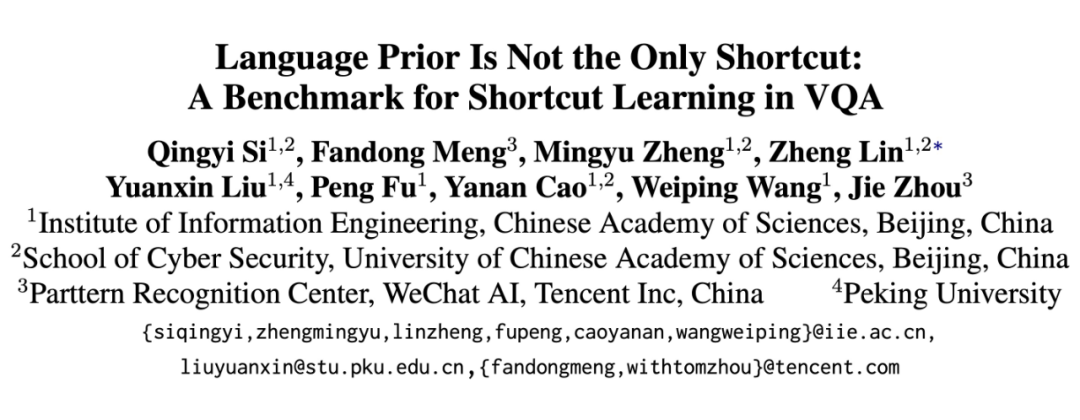 )上已经取得了不错的表现,但是研究显示,这些模型严重依赖于训练集中的语言偏见,即直接根据训练集中问题文本和答案之间的虚假关联给出预测答案,而不对图片和问题文本进行综合理解。这种现象被称语言优先(language prior)问题,是捷径学习(Shortcut Learning